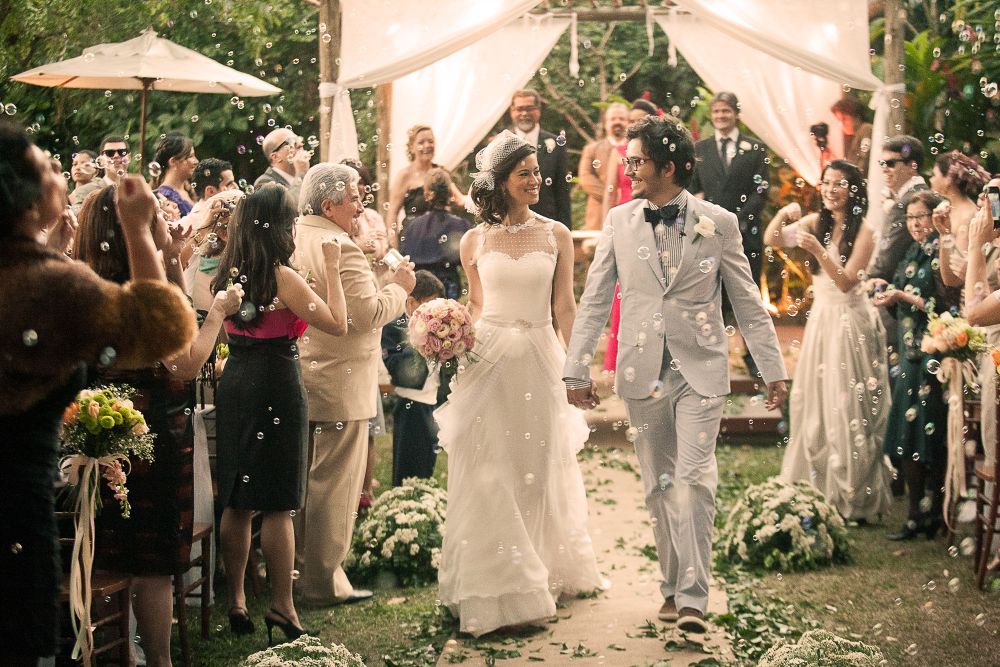 Ficha Técnica: Vestido: Duemme Alta Costura (estilista Margareth Zamprogno), Buquê: idealizado pela noiva e comprado na Cadeg (RJ), Cabelo & Make-up: Rita Elias, Terno (noivo): Ivan Aguillar, Decoração: Kika Neves, Locação: Meio do Mato.